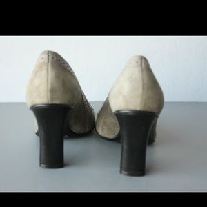 Perfect condition vintage (80s) Nine West loafer pumps. Never worn. The stacked, chunky heel is super sturdy. Heel height 3". Slightly square toes and leather fringes for decoration, with baby pink insoles. Strikes the perfect balance between feminine and masculine elements. Shoe size is a standard 7.5. Non-slip rubber soles on the toe area. This is so rare, definitely one of a kind! Price negotiable, so make me an offer ๐