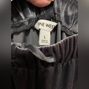 Nine West - grey / silver velvet pull on pants - soft and flowy- size Large - side pockets - tie waist