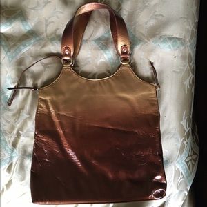 Neat shimmer fading color on bag. No stains , tears. Zippers on sides. Good condition.