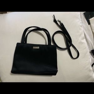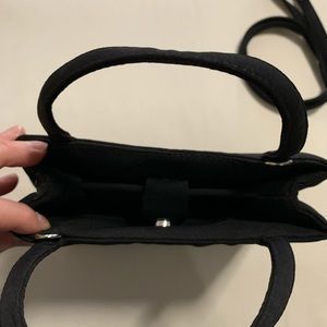 Nine West black mini bag, shoulder strap included. Inside zipper compartment, middle divider with tab closure. Approx size 8x9x2 inches.