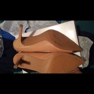 Never worn only tried on. Natural in color with gold trim around toe. New with box.