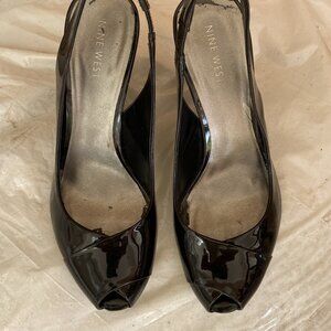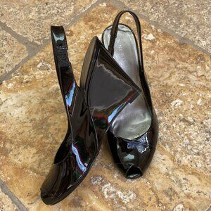 Nine West real Patent Leather Wedge Slingback Sandal - 7.5