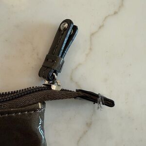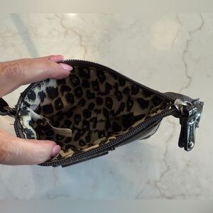 Nine West shiny brown wristlet wallet animal Print lining