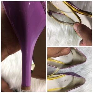 Nine West, size 7.5, 4" heel. Leather upper, better quality=longevity . GReat spring time piece. Minor wear see pics, frame 7. Looking for feet to make happy