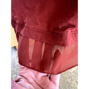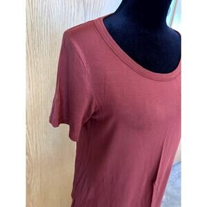 Nine west clay colored T-shirt with 2" sheer hem. Scoop neck, short sleeves. Made of Model & Elastine.