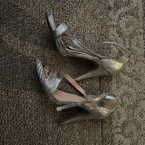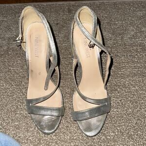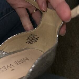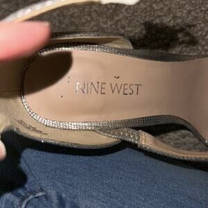 Step out in style with these stunning Nine West silver heels! Perfect for adding a touch of sparkle to any outfit, whether it's a night out or a special occasion.