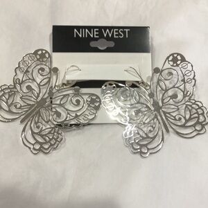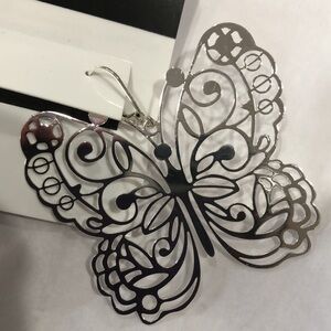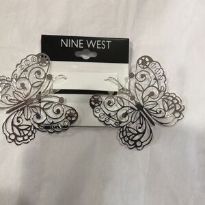 Nine West silver tone butterfly shaped lever back earrings new