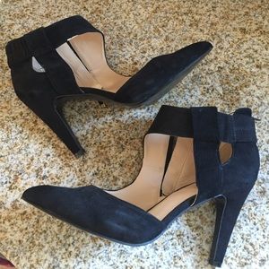 Size 8 Nine West Heals. Great ankle support, trendy. Minimal wear. Great for work or a night on the town. True to size.