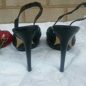 Nine West WNLVIDA black, slightly used stilleto sandal, slim 4.5" heels. Very sexy party shoes!