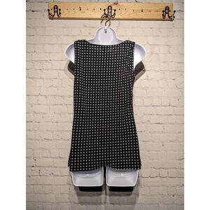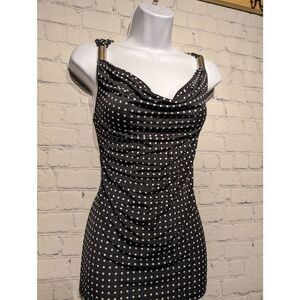 Style:. Silky stretchy polka dots fit top with metal accents at the shoulders.