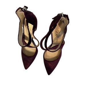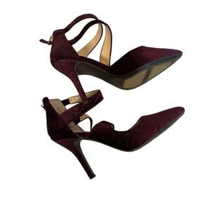 Nine West maroon suede 4" heels with swirl inlaid design. size 5.5M. Like new in excellent condition with no flaws.