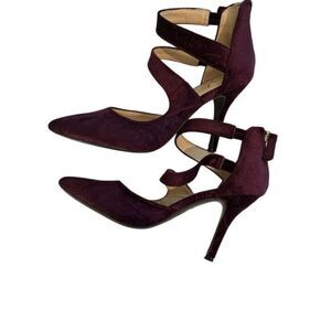 Nine West suede pumps with ankle straps, size 5.5M.