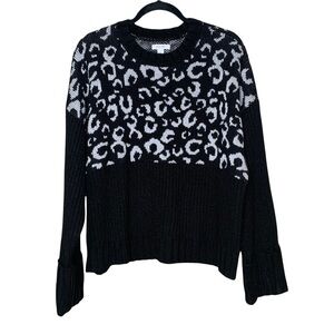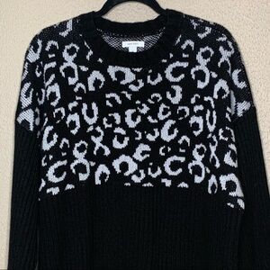 Nine West sweater Women's Chunky Knit Cheetah Print Ribbed Black Size XL