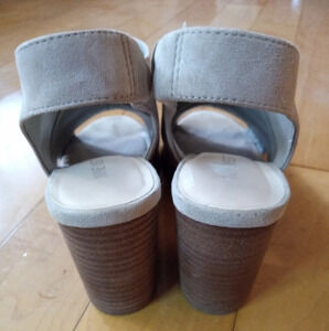 Nine West taupe suede criss cross peep toe slingback block heel shoes