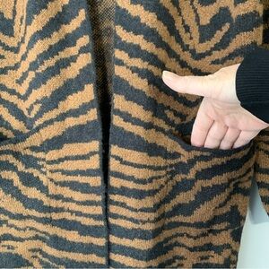 Nine West soft and cozy stylish black and brown tiger print pattern longline open front cardigan with waist pockets. Perfect casual or career! EUC Size S