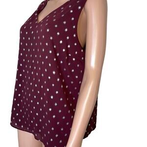 Nine West top blouse sleeveless maroon burgundy metallic dots SZ L