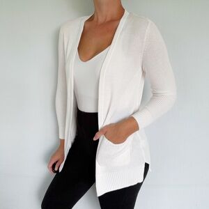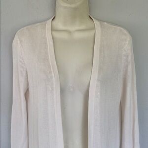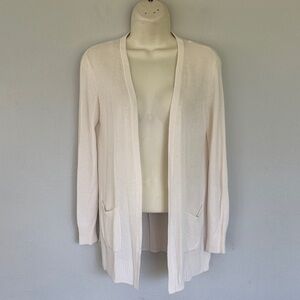 Nine West white ribbed knit lightweight draped open front long cardigan sweater size small