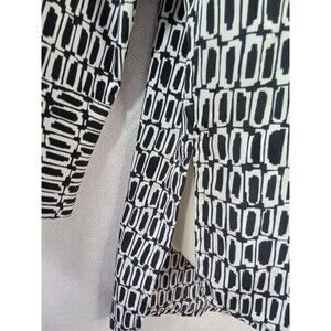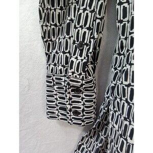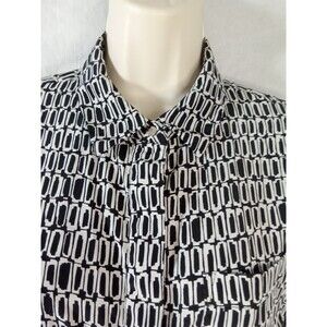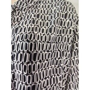 Nine west women medium black and white long sleeve button up blouse 100% polyester and is machine washable in good used condition no notable damage or stains like new condition. All measurements are done with item laying flat.