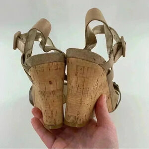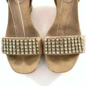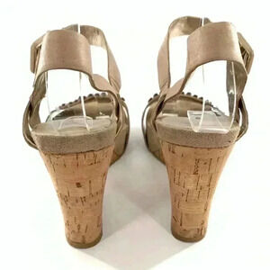 Nine West womens heels size 6.5 SusantJ taupe leather gem platform wedges