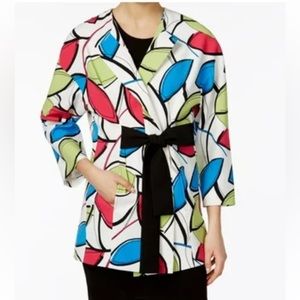 🌹Nine West women’s multi color tie wrap topper, jacket, blazer, long sleeve 10