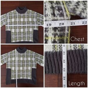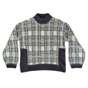 Nine West yellow, gray & white plaid mock neck sweater in women's size L.