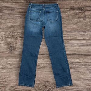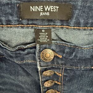 These Nine West jeans feature a timeless straight leg design in a rich blue hue, perfect for a versatile and stylish look. The denim showcases a medium-to-dark wash with natural fading, offering a comfortable and lived-in appearance. Ideal for casual outings, these jeans provide a classic fit that complements any wardrobe. Button up jeans
