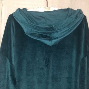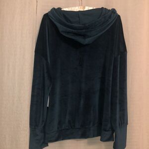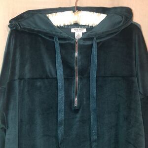 Nine West L Active Velvet Dark Teal Quarter Zip Pullover Hoodie Loungewear