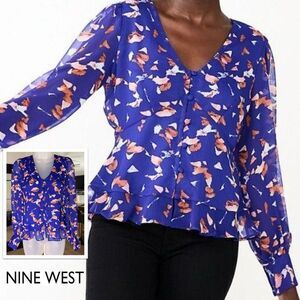 Nine West Long Sleeve V-Neck Button Front Blouse, Size Small