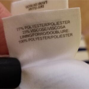 77% Polyester, 23% Viscose; Lining: 100% Polyester