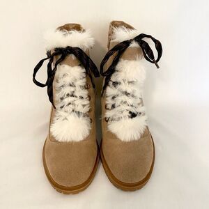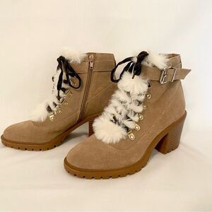 Nine West Tan Suede Ankle Boots with Faux Fur Trim size 7. Real leather.