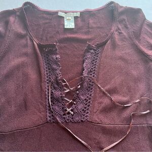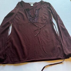 Nine West Women's Lace Up Blouse/Tunic Burgundy Size Small, Long sleeve