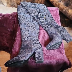 Nine West Womens Siventa Brocade Heels Over-The-Knee Boots Shoes