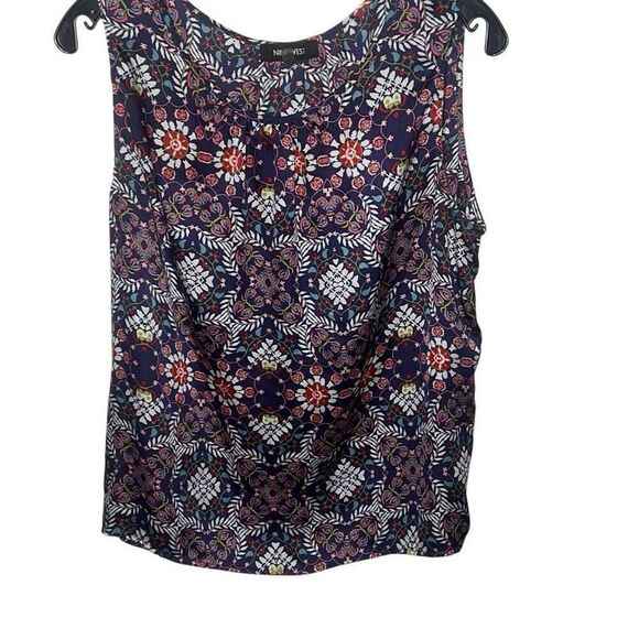 Nine West Womens Size Petite XL Flowy Tank Blue Multicolor Printed Floral Mosaic