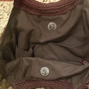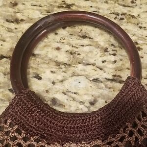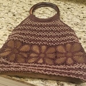 Brown floral womens purse Wooden handles gently worn. Can be replaced or fixed. I'm pictures Great condition other than minor use on handles . Accepting offers and fast delivery!