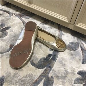 Beautiful nine west flats In shimmery gold get your shine on size 7 can slip in to anything easy to travel with
