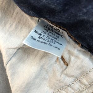The product is a pair of Nine West women's blue denim jeans in size 12 with a dark wash. They feature a bootcut style with stretch for comfort and flexibility. Made from a cotton blend denim fabric, these regular fit jeans have a mid-rise waist and a 30-inch inseam. Perfect for all seasons, these machine washable jeans are a stylish and versatile addition to any woman's wardrobe.