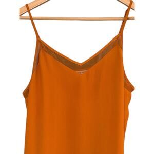 Burnt Orange Satin Cami Top V-Neck Tank Adjustable Straps Minimalist Layering