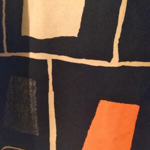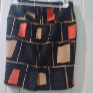 Like new and no defects-maybe worn once size 16 midi skirt with a red, black and cream geometric pattern. Fully lined with a zipper. Flat waist 19" and length is 23". Tote 3