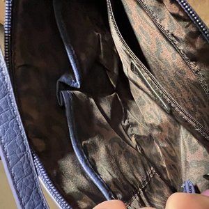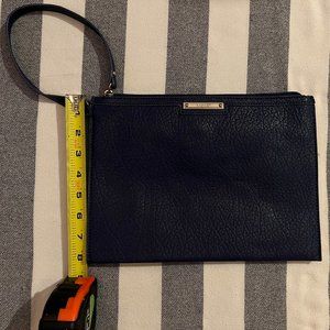 Nine West navy textured wristlet. muted leopard print inside. 8'' x 11''