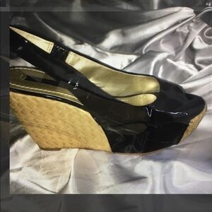 Gorgeous Nine West open toed platform sandals in Patton leather with healed strap and woven bottoms
