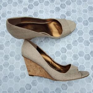 Nine west tweed open toes cork wedges