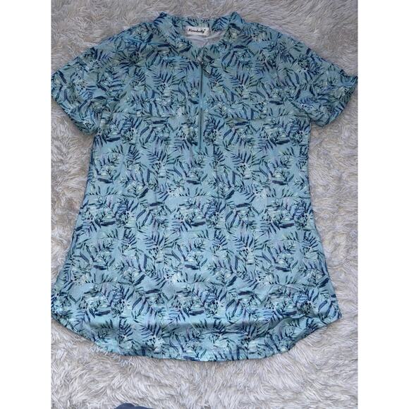 Fantastic, excellent quality and super comfortable NineDaily women's sz. L short sleeved super pretty blue/ aqua design zip front activewear top. Super comfortable and any activity, everyday etc. Comfortable and breathable. Top currently retails for $29. New w/out tags!