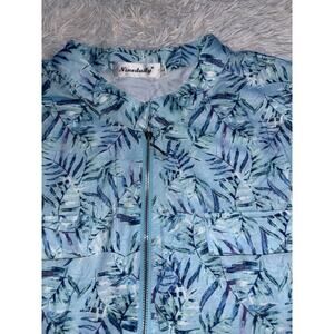 NineDaily women's sz. L Blue/ Aqua Design zip front top. New w/out tags.