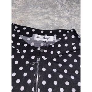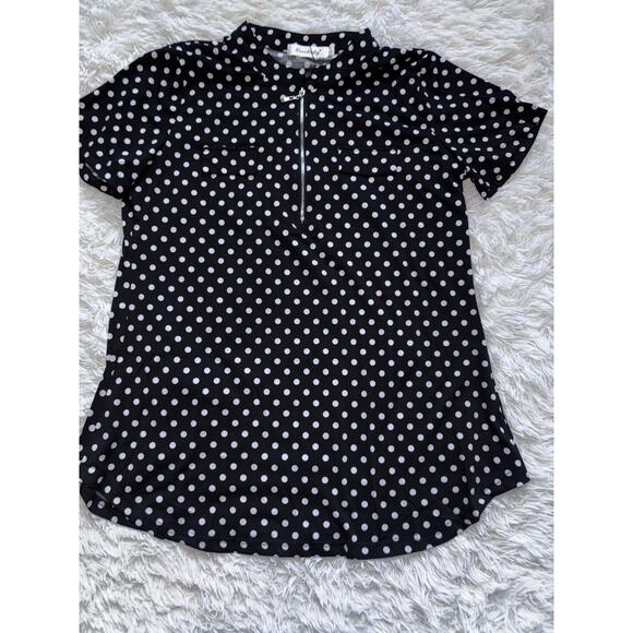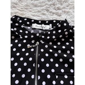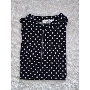 NineDaily women's sz. L black & wht. polka dot zip front top. New w/out tags.