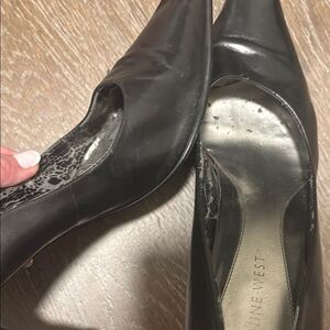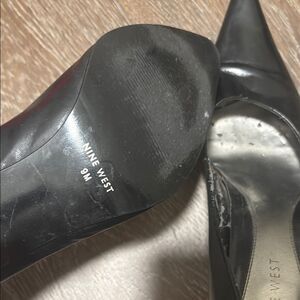 Elevate your style with these sophisticated black heels from Nine West, featuring a sleek pointed-toe design. Crafted with a smooth leather-like finish, these medium to high-heeled shoes are perfect for formal or business occasions. Experience both elegance and comfort with their refined construction.