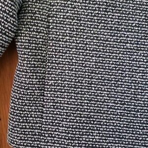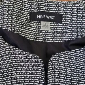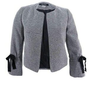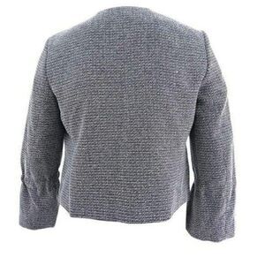 Cute black & white with a silver sparkle fully lined blazer with draw ties on the arms to create a bell sleeve. Open style, no closure. Size: Womens S Condition: Pre-Owned Like New MEASUREMENTS: Armpit to armpit- 20 in Length- 20 in Sleeve 27 in All measurements are approximate. I will consider reasonable offers. Thank you for visiting. Have an awesome day.
