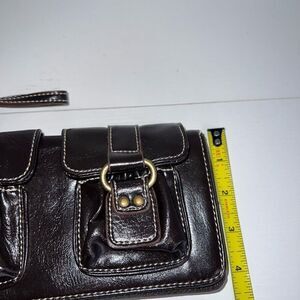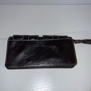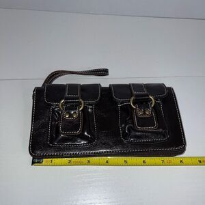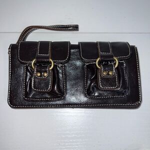 Nine West Clutch Purse With Wrist Strap Brown Wallet Bag Zipper Snap Closure