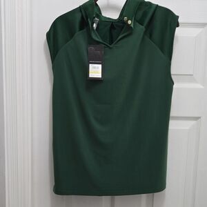 Chic dark green blouse with a stylish tie front. Perfect for work or casual outings.