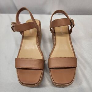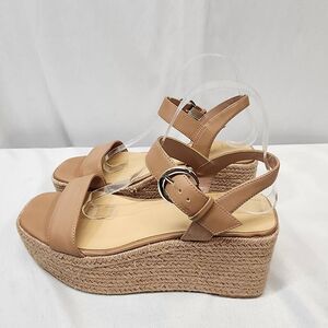 Nine West Noan 3 Wedge Sandals Women's 8.5M Taupe Buckled Ankle Strap Open Toe