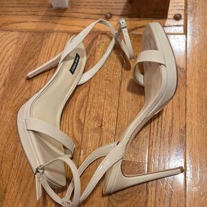 Nine west platform heels (platform is one inch). Chic cream 5 inch patent leather heels with elegant straps. Perfect for any occasion.
